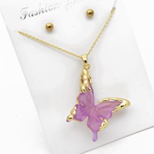 SET DE COLLAR Y ARETES - DIJE EN RODIO CON MICROCIRCIONES / MARIPOSA