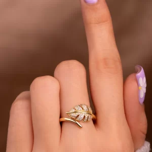 ANILLO HOJA CIRCONES DORADO