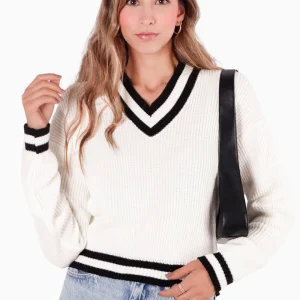 Buzo tejido con escote en v y con puños y escote en contraste - MARYN