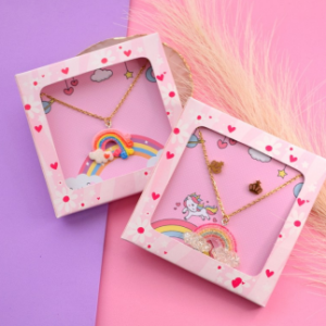 Cadena en acero inoxidable, dije acrílico. Incluye empaque de entrega Diseño y topitos llega surtido.