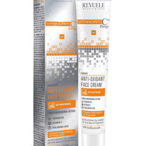 Crema antioxidante de noche Vitanorm C+ de Revuele: Crema muy concentrada diseñada para su uso por la noche. Protege la piel de los radicales libres e impide que aparezcan los signos de envejecimiento. Se recomienda comenzar su uso cuando aparecen los signos visibles de la telangiectasia, capilares dilatados, formación de “estrellas” vasculares, pigmentación excesiva. La combinación e interacción entre troxerutina, vitamina С y ácido hialurónico de Crema antioxidante de noche Vitanorm C+ de Revuele, ayuda a estabilizar las paredes vasculares de los capilares, venotonización (terapia de drenaje) y corrección de rubefacción de la piel. El Ácido hialurónico mantiene la hidratación normal en las células del cutis, formando una membrana protectora en su superficie, reteniendo agua e impidiendo su eliminacion y reduciendo la profundidad de las arrugas. La vitamina C es un potente antioxidante natural cuyas propiedades tónicas refuerzan las paredes de los vasos sanguíneos, ayuda a la cicatrización de heridas diversas y mantiene la inmunidad local, activando la función protectora de la piel. Ayuda a ralentizar el proceso de envejecimiento de la piel, intensifica la síntesis de colágeno y elastina, participa en el suministro de energía a las células e inhibe la producción de melanina, impidiendo la formación de manchas de la edad. El Colágeno incluido en Crema antioxidante de noche Vitanorm C+ de Revuele, rejuvenece la piel y unifica el tono del rostro. El Aceite de zanahoria recupera la elasticidad, suaviza las arrugas, mejora la tez y la textura, suaviza la piel seca, deshidratada y la regenera. El Extracto de té verde elimina las toxinas y recupera e hidrata la piel de forma eficaz. Modo de uso. Aplique cada noche una capa gruesa de Crema antioxidante de noche Vitanorm C+ de Revuele sobre el rostro y cuello limpios, evitando el contorno de ojos. Garantizamos que nuestros productos son 100% originales del fabricante, puesto que trabajamos con fabricantes oficiales de las grandes marcas y "Somos vendedor online autorizado". Ver mas