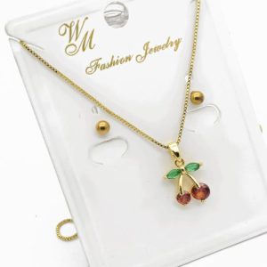 SET DE COLLAR Y ARETES - DIJE EN RODIO CON MICROCIRCIONES / CEREZA