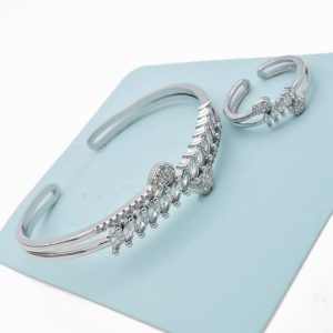 SET DE PULSERA TIPO BRAZALETE Y ANILLO CON CRISTALES GRADUABLE